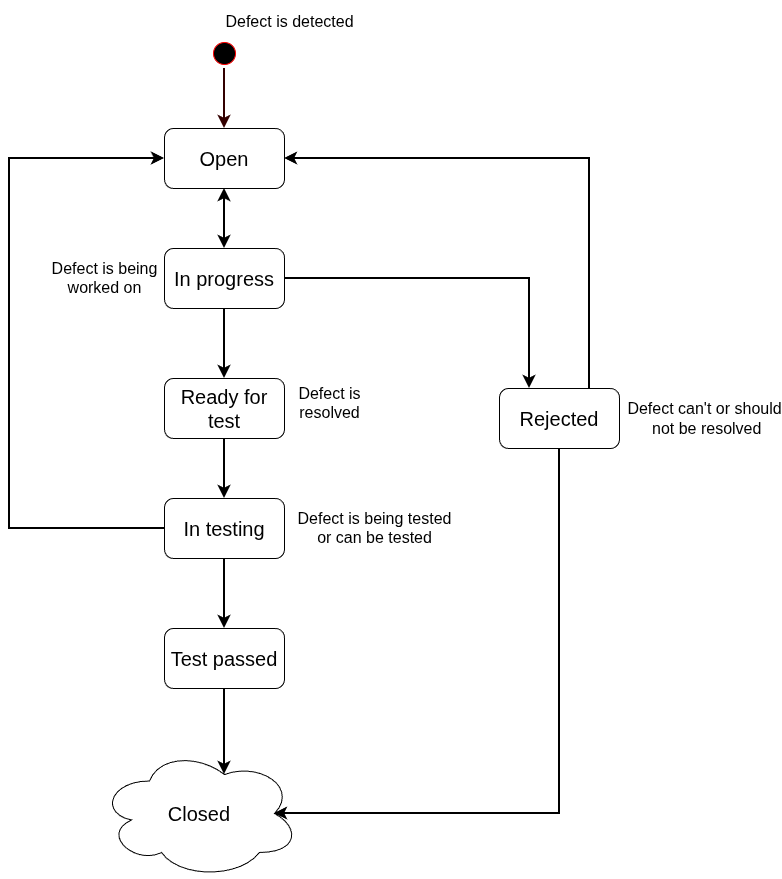 The last state Closed is depicted as a cloud, because there could be more states that represent specific testing/stage environment (for simpler projects Closed can be a terminal state).